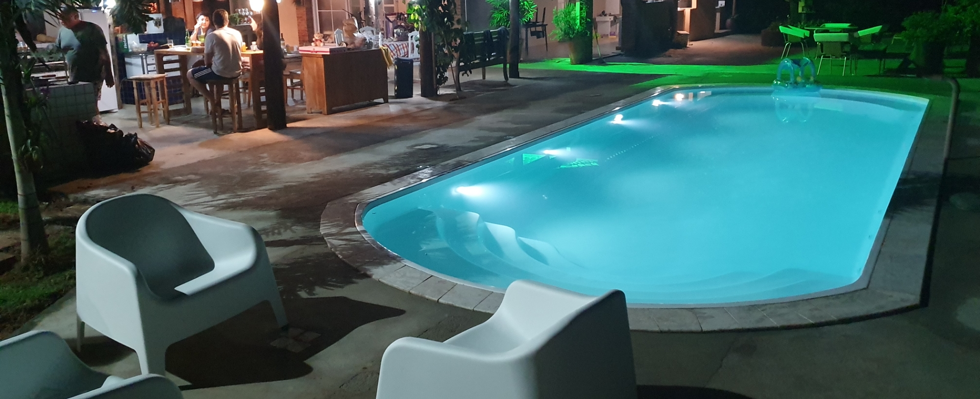 une beleza e praticidade, transformamos o primeiro degrau de acesso à piscina em um banco/Spa,